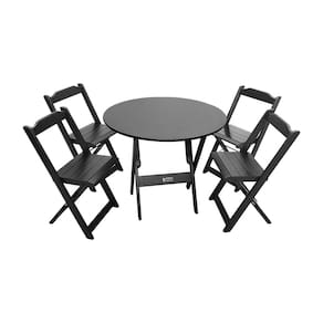 Conjunto Dobrável Mesa De Madeira 90cm Redonda Com 4 Cadeiras Preta - Tarimatã A Mesa redonda dobrável é ideal para bares, restaurantes, estabelecimentos, áreas de lazer e também para sua casa. Em madeira maciça tornando resistente e durável. Seu design permite ser encaixado em qualquer ambiente, trazendo um toque a mais para seu estabelecimento. Além de sua durabilidade, o que lhe trará conforto para servir seus clientes. Por ser dobrável torna-se mais fácil guardar, manusear e limpar o produto.