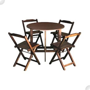 Conjunto Dobrável Prático Mesa Redonda Com 4 Cadeiras Imbuia