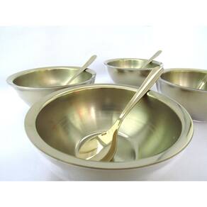 O Conjunto de Sobremesa Dourado Fineza possui uma parede dupla feita em aço inox de alto padrão e poliestireno, que proporciona a temperatura ideal para a sua sobremesa, seja ela fria ou quente. O dourado do Conjunto de Sobremesa Dourado Fineza é feito com revestimento de qualidade. Não é pintura e não descasca.