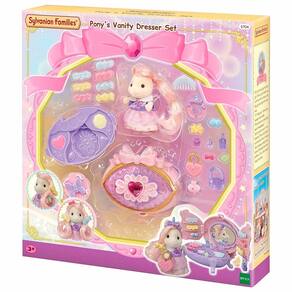 Conjunto e Figura - Sylvanian Families - Penteadeira da Pônei - Epoch Magia: Sylvanian Families são adoráveis personagens animais distintos com charmosas e bonitas casas, móveis e acessórios. Eles vivem, trabalham e brincam na idílica e maravilhosa terra de Sylvania. Detalhes: • O Conjunto Penteadeira da Pônei é um conjunto de acessórios para cabelo que inclui a Menina Pônei com um espelho compacto e acessórios para cabelo • O espelho compacto pode ser aberto para se transformar em uma penteadeira com um espelho e prateleiras • Os acessórios incluídos podem ser guardados dentro da penteadeira • O pedaço de fita no meio do espelho compacto pode ser utilizado como um banquinho para a cômoda • A penteadeira também pode ser utilizada para que se exiba acessórios • Apresentando a Menina Pônei de cabelo rosa, Joy Informações: • Produto: Conjunto Penteadeira da Pônei • Marca: Epoch Magia • Coleção: Sylvanian Families • Tipo: Figuras com Acessórios • Categoria: Figuras de Animais e Pets • Conteúdo da embalagem: - Menina Pônei, Unidade principal compacta, Paleta de maquiagem, Pedaço de fita (banquinho), Mini espelho compacto, Faixa de Alice de Unicórnio, Pente, Bolsa de coração, Bolsa de joia, - Clip de cabelo (doce amarelo), Clip de cabelo (doce azul), Clip de cabelo (morango rosa), Clip de cabelo (morango azul), Clip de cabelo (flor rosa), Clip de cabelo (flor azul), Clip de cabelo (flor amarela), - Acessório de cabelo (concha), Acessório de cabelo (estrela), Garrafa de perfume, Hidratante, Base, Brinco/bracelete (trevo), Brinco/bracelete (fita) • Recomendação: para crianças a partir de 03 anos de idade Especificações: • Referência: 5704 • Código de Barras: 5054131057049 • Embalagem (C x A x L): 29 x 30 x 6.5 cm • Embalagem (Peso): 0.400 kg • Material / Composição: Plástico Injetado e Tecido • Registro: 004 975 / 2019 • Certificado: Órgãos Autorizados - OCP´S (Organismos de Certificação de Produtos) Aviso: • As imagens são meramente ilustrativas • Os pesos, tamanhos e medidas são aproximados • As cores e estampas dos produtos podem ter variações • As informações são de responsabilidade do fabricante ou fornecedor