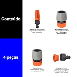 - 1 Engate Rápido com Aquastop Tramontina em Plástico para Mangueira 1/2".