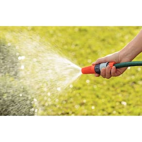 - O esguicho é conectado em mangueiras de 1/2", 5/8" e 3/4" através de sistema de engate rápido.