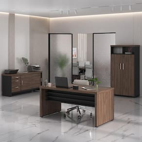 Organize seu escritório em grande estilo com o Conjunto Escritório 3 Peças Mesa 158cm Corp A06 Charuto/Preto, da Mpozenato.