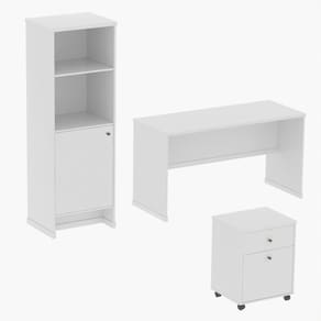 O Conjunto escritório Verbena é ideal para quem desejar inovar o ambiente de maneira simples e sofisticada. O Armário Verbena é ideal para deixar seu ambiente ainda mais moderno e prático. Sua modularidade permite criar diversos ambientes, desenvolvido em estrutura em MDP, tampo em 25 mm, possui 2 prateleiras superiores,1 prateleira inferior, pés ripados com sapatas plásticas e puxadores em ABS. O Gaveteiro irá complementar o seu ambiente residencial ou escritório com estilo e praticidade. Estruturado em MDP, possui 2 gavetas de corrediças telescópicas, sendo uma gaveta para pastas suspensas, e rodízios para melhor locomoção do produto. A Mesa Verbena é produzida em MDP, conta com tampo em 25mm, e pés ripado com sapatas plásticas, garantindo organização e versatilidade no seu ambiente.
