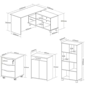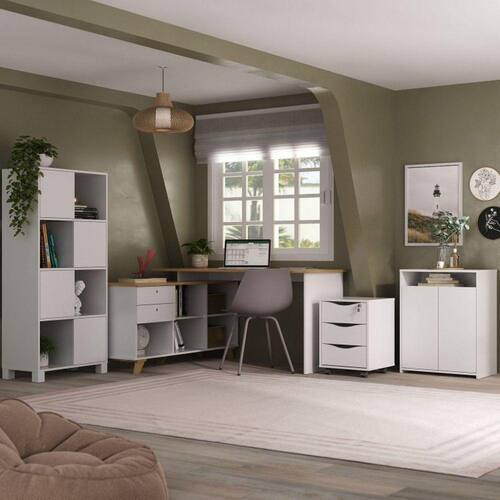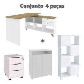 Além de belos e funcionais, os móveis desse conjunto também oferecem qualidade premium. Com estrutura robusta e estável feita de MDP proveniente de madeira reflorestada, você tem a garantia de durabilidade excepcional. Além disso, o acabamento BP é resistente ao atrito e à umidade, proporcionando ainda mais proteção e longevidade aos móveis. Invista em excelência! Altura do Conjunto: 145 cm Ambiente: null Ambiente Principal: Escritório Cor: Olmo/Branco Informação Complementar: 1x Balcão Para Escritório 2 Portas 1 Prateleira - Cool BrancoLargura: 60 cmAltura: 75 cmPeso: 18 kgProfundidade: 35 cmNecessita Montagem: Sim1x Estante Livreiro com 8 Nichos 4 Portas - Branco - Wally Artany BrancoLargura: 67,5 cmAltura: 145 cmPeso: 32 kgProfundidade: 36 cmNecessita Montagem: Sim1x Gaveteiro 3 Gavetas com Chave e Rodinhas- Para Home Office e Escritório Face -Branco BrancoLargura: 40 cmAltura: 54,5 cmPeso: 14,5 kgProfundidade: 40 cmNecessita Montagem: Sim1x Escrivaninha em L Retrô para Escritório Gold Branco/OlmoAltura: 75 cmPeso: 49 kgProfundidade: 60 cmNecessita Montagem: Sim