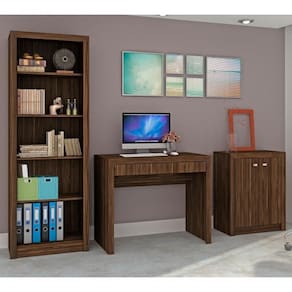 Conjunto Para Escritorio Tecno Mobili, móveis de qualidade que oferecem durabilidade e resistência, com estrutura em MDP de 15mm, pintura com acabamento em BP (Fosco). Escrivaninha conta com 01 gaveta com corrediças metálicas que suporta até 3 kg, tampo resistente pode acomodar um ou , suporta até 8 kg, Estante livreiro com 04 prateleiras amplas e resistentes, Balcão com tampo superior resistente suporta até 13 kg, portas com dobradiças metálicas, prateleira interna que suporta até 12 kg e puxadores modernos, possui amplo espaço interno para organizar a papelada do trabalho ou os livros de estudo, este Conjunto Escritório da Linha Tecno Mobili, possui diversas peças que são vendidas separadamente, são ideais pra você compor o melhor projeto pra seu escritório. Este móvel chegará em sua casa separado em 03 volumes.