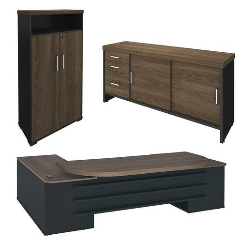 Aumente sua produtividade com o conjunto de escritório com Conjunto Escritório Home Office 3 Peças Corp A06 Charuto/Preto , da Mpozenato.