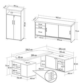 Esse conjunto exala charme contemporâneo e design imponente. A mesa para escritório rouba a cena com seu formato em U, ampla bancada der trabalho, além do espaço interno com portas e gavetas, que proporciona armazenamento e estabilidade para todos os seus itens essenciais de trabalho. Já o balcão para escritório com 2 portas e 3 gavetas permite que você organize com praticidade pastas, documentos e suprimentos de trabalho. Agregando mais versatilidade, esse conjunto também conta com um armário multiuso 2 portas para otimizar ainda mais a funcionalidade. Em outras palavras, organização não vai faltar.