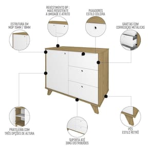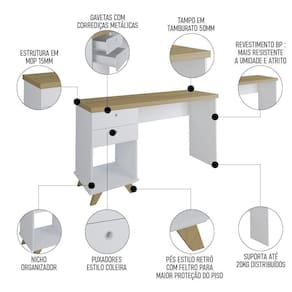 Indispensável para quem busca praticidade e estilo na hora de montar seu escritório ou cantinho de estudo, o Conjunto Escritório Home Office 3 Peças Elai A06 Olmo/Branco, da Mpozenato, é a escolha perfeita para isso, a começar pelo design moderno e despojado.
