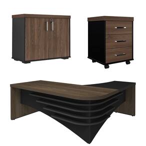 Inove seu escritório e aumente sua produtividade com o conjunto de escritório com Conjunto Escritório Home Office 3 Peças Mesa Diretor Corp A06 Charuto/Preto, da Mpozenato.