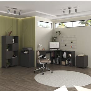 Composto por itens essenciais para uma boa dinâmica de trabalho ou estudos, esse escritório completo conta com uma mesa em L, que além de dispor de uma excelente bancada de trabalho, ainda conta com nichos para manter materiais, documentos e diversos itens organizado; além da estante livreiro com portas e nichos, o balcão para escritório duas portas e, ainda, um gaveteiro com rodinhas. E tudo isso fabricado com materiais de qualidade, garantindo a resistência e durabilidade.