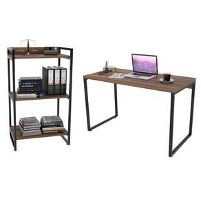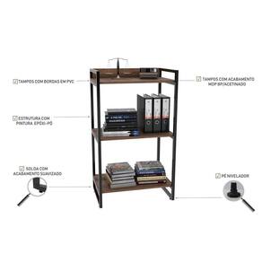 Características do Produto Material da Estrutura: MDP BP 15 mm/Aço. Peso Suportado: 5 Kg por prateleira/ 30 Kg na mesa. Tonalidade: Nogal. Acabamento: BP Acetinado e Pintura Epóxi. Escala de Brilho: Fosco. Possui Prateleiras: Sim. Material das Prateleiras: MDP. Possui Pés: Sim, Aço com pintura epóxi. Possui Rodízios: Não. Diferenciais: - Design moderno. - Fita de borda em PVC. - Pés niveladores. - Estrutura reforçada. Sistema de Montagem: Minifix / Cavilhas / Parafs. Manual de Montagem: Sim. Complexidade da Montagem: Baixa. Conteúdo da Embalagem: 1 Estante/1 Mesa. Volumes: 2 Volumes. Garantia do Fabricante: 3 meses contra defeito de fabricação. Montagem: Recomendamos que seja feita por um . Recomendação de Limpeza: Utilize pano levemente úmido.