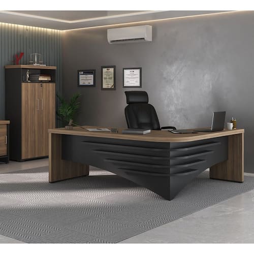 1 unidade MESA TAMBURATO DIRETOR II LE NOGAL/PRETO (6129) 1 unidade ARMARIO TAMBURATO C/NICHO NOGAL/PRETO (6369)