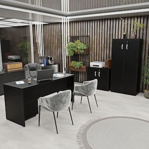 Transforme seu escritório com o Conjunto Completo Office NetMobil! Organize seus documentos, materiais e até mesmo itens decorativos com praticidade e estilo. Ideal para quem busca um ambiente de trabalho funcional e elegante.