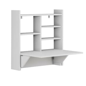 Conjunto Estante com Mesa Dobrável e 2 Prateleiras Aba Branco. A Estante de Parede com Mesa Dobrável é Compacta, Moderna e Funcional Perfeita para ambientes com pouco espaço, esta estante de parede com mesa retrátil une praticidade e estilo em um só móvel. Com design moderno e acabamento clean, ela conta com prateleiras para livros, objetos decorativos e itens do dia a dia, além de uma mesa dobrável que se transforma em uma estação de trabalho funcional. Ideal para quem precisa de um espaço organizado e versátil para estudar, trabalhar ou simplesmente decorar com inteligência. Otimize seu ambiente sem abrir mão da elegância e da utilidade.