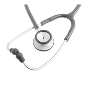 Composição: - auscultador: cabeça dupla permite auscultação de sons em alta e baixa frequência; - anel: possui anel anti frio para evitar o toque e sensação de frio ao paciente; - hastes: são leves e mais resistentes, que proporciona mais ergonomia e desempenho; - olivas: macias em silicone que se ajustam ao canal auditivo, permitindo maior conforto e seu encaixe sem rosca cria uma excelente vedação acústica; - acabamento: é em liga de alumínio anodizado.