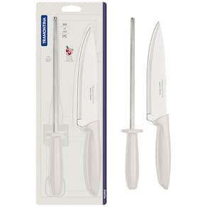 Quem ama cozinhar sabe que o preparo dos alimentos é feito por etapas, e ter em mãos utensílios específicos que possam facilitar esse processo, é indispensável. Por conta disso, esse excelente Conjunto Faca Chef e Chaira Plenus da Tramontina é perfeito!