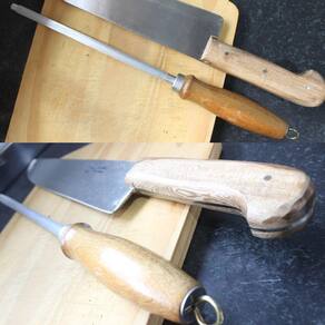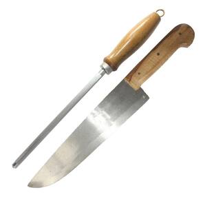 Conjunto Faca Churrasco Cabo Madeira 8 pol chaira 7 pol com bainha