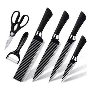 Itens inclusos: 1 Cutelo de 7 17.8cm 1 Faca de Carne 8 20cm 1 Faca para Pão 8 20cm 1 Faca para vegetais 3 9cm 1 tesoura de cozinha 13cm 1 descascador de legumes 15cm