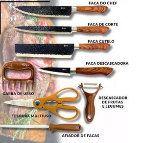 Conjunto facas inox para churrasco com maleta Descrição do anúncio Transforme seu churrasco em uma experiência gourmet com este kit de facas ideal para os verdadeiros amantes da carne e da boa culinária, o conjunto conta com lâminas afiadas em aço inoxidável, design moderno e acabamento elegante. Seja para uso doméstico ou , este kit é perfeito para churrasqueiros exigentes que buscam precisão e estilo na hora do corte. Além de garantir cortes perfeitos, o kit acompanha acessórios essenciais como cutelo, afiador e amolador, proporcionando maior praticidade e durabilidade para suas facas. Um excelente presente para o dia dos pais ou qualquer ocasião especial Conteúdo da embalagem 1 faca do chef 1 faca para fatiar 1 faca de desossar 1 faca para legumes 1 cutelo 1 afiador ou amolador manual 1 garra de segurar carne 1 maleta elegante para armazenamento Características Lâminas afiadas e resistentes em aço inoxidável Design ergonômico com cabo confortável Visual sofisticado na cor preta com marrom Ideal para cortar carnes, legumes, verduras e muito mais Uso doméstico ou Fácil de limpar e com alta durabilidade Maleta prática para transporte e organização Presente ideal para datas comemorativas como dia dos pais Especificações Material das lâminas: aço inoxidável Material do cabo: polipropileno resistente Cor: preta com marrom Quantidade de peças: 8 Tipo de produto: kit de facas para churrasco Uso: doméstico e Acompanha maleta: sim Tipo de corte: precisão e alta performance Entrega: rápida
