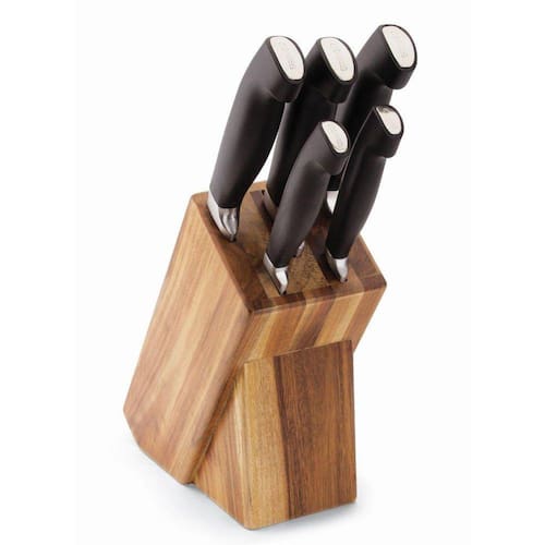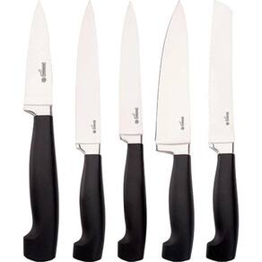 A linha Elegance da Mundial conta com design moderno que proporciona elegância e modernidade para sua cozinha, além de contar com a praticidade na bancada e na mesa na hora de servir. Cepo com 5 peças, feitas em aço inoxidável de alta qualidade e resina termoplástica para garantir segurança no corte.