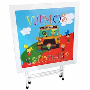 Kit com 1 mesa e 2 cadeiras Dobrável Material Reforçado Cor: Branca Estampada