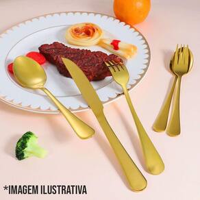 Conjunto Faqueiro 18 Peças Jogo Talheres de Mesa Jantar Garfo Faca Colher Victoria Gold Inox Fratelli