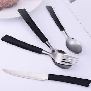 Conjunto Faqueiro 36 Peças Jogo Talheres de Mesa Jantar Garfos Facas New Caprese Preto Fratelli Inox