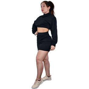 Conjunto Feminino Casaco Blusa + Saia De Moletom Inverno - Preto - G