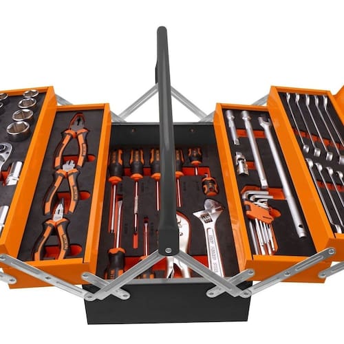 Composição: Maleta de metal e ferramentas em aço cromo-vanádio