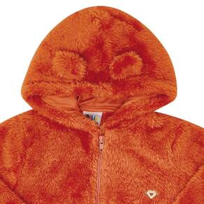 Para ajudar na escolha do look perfeito na hora de sair a Pulla Bulla trouxe esse conjuntinho, composto por um blusão com detalhe super fofinho de orelhinha no capuz, confeccionado em pelo na cor laranja ferrugem, proporcionando muito conforto ao look e para completa uma calça lisa, confeccionada em molecotton na cor laranja ferrugem. Sua garotinha vai amar esse look e aproveitar cada momento do inverno.