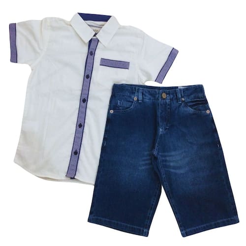 Pense nun conjunto maravilhoso camisa 100% algodão cru com detalhes azul e bermuda jeans macia ,um luxo !! muita qualidade !! zemar é chic demais !! Perfeito para ocasiões especiais como aniversários,casamentos e festas em geral, ou simplesmente para dar um rolê babando na sua lindezura . Traz muita naturalidade e leveza que certamente vão encantar nossos pequenos. Coleção inspirada em cores e materiais do Brasil e Europa.Tudo pensado e desenvolvido com muito carinho.