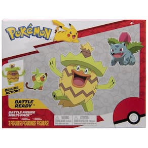 O conjunto Pokémon Battle Figure Grass-Type Theme reúne três figuras articuladas do tipo Grama — Ludicolo, Ivysaur e Grookey — em um pacote temático indicado para brincadeiras e composição de coleções. As figuras apresentam poses dinâmicas inspiradas na série animada Pokémon, permitindo simular movimentos característicos em batalhas e cenas de treinamento.