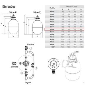 Conjunto filtro e motobomba 3/4cv para piscina até 76 mil litros - nautilus Conjunto filtro e motobomba 3/4cv para piscina até 76 mil litros - nautilus O filtro nautilus para piscina f550p é um filtro de alta qualidade e desempenho, indicado para garantir a limpeza de piscinas de uso residencial de 30.000 a 52.000, gerando qualidade e economia, não oferecendo riscos à saúde. Seu tanque é produzido com polietileno rotomoldado, à prova de corrosão, em uma peça única, sem emendas o que garante alta resistência a tensões residuais. Seu manuseio é simplificado através de válvula seletora multivias em abs com 6 seis posições filtrar, lavar, drenar, recircular, pré-filtrar e fechado . Compatível com a motobomba nautilus série nbf-2 com de cv que garante filtração eficiente e economia de energia. A qualidade de filtração aumenta consideravelmente graças a carga filtrante celpool zeólita . O filtro nautilus para piscina f550p tem 3 três anos de no tanque e conta com assistência técnica completa e a qualidade da marca nautilus. Para piscinas comerciais consulte a ferramenta de dimensionamento ou a norma da abnt 10.339 Características do filtro: Diâmetro: 550mm Peso: 14,2kg Motobomba recomendada: nbf-3 Modelo do filtro: f550p Vazão: 9,5m/h Quantidade de sacos de areia: 5 Quantidade de sacos zeolita: 3 Área filtrante: 0.24m Volume piscina: 40.000 a 57.000 l Dimensões do filtro: Altura: 96cm Largura: 55cm Especificações técnicas da motobomba: Modelo: nbfc-3 Tipo de motor: capacitor permanente Potência: 3/4cv Tensão: 127/220v - monofásica Conexão: entrada para tubulação de 50mm ou 1. 1/2 Rotação: 3500 rpm Grau de proteção: ip21 : 12 meses de fábrica Itens inclusos: 01 motobomba centrífuga para piscina nbfc-3m 3/4cv 110/220v 60hz - nautilus 01 filtro para limpeza de piscina de 53-76 mil litros f550p - nautilus 01 manual de instalação : 1 ano de contra defeitos de fabricação. Atenção: O filtro e a motobomba são equipamentos que devem ser posicionados em local próximo da piscina para diminuir as perdas na tubulação de sucção da bomba. Uma perda elevada pode exigir uma motobomba de maior potência. A bomba deve ser instalada preferencialmente abaixo do nível da água da piscina afogada , podendo ser colocada, por ser auto-escorvante, até 1m acima do nível da água. Marca: Não Informado