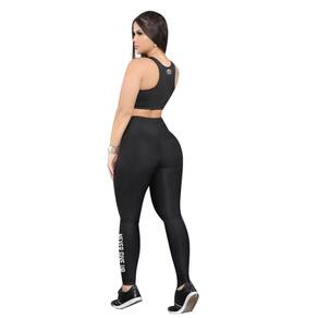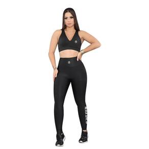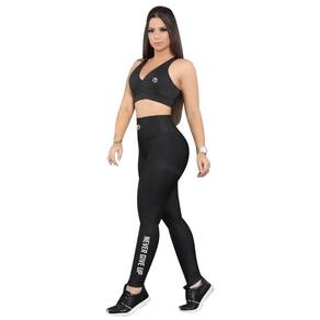Conjunto Fitness Top e Legging pra Academia e Ginástica - Coleção Never Give Up - Preto - P