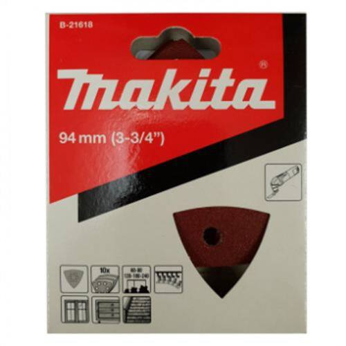 Características: Conjunto de lixas triangulares em tiras aderentes, para Madeira e Metal uso em multicortadoras Makita. Lixa ideal para lixar madeiras, madeiras rígidas, laminados, madeiras de construção e metais. Especificações: Grão: 60,80,120,180,240; Marca: Makita; Modelo: B-21618; Tipo de lixa: tiras aderentes; Formato da lixa: triangular; Formato de venda: Unidade; Unidades por embalagem:10 2 de cada . Conteúdo: 1 Conjunto Folha de Lixa com 5 Medidas P/Madeira. De Fábrica: 3 meses.