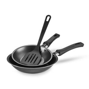 Conjunto Frigideira Com Espátula Cristal Antiaderente Preto MTA 387 Kit Frigideira Cereja Nº20 e 16 MTA cód. 387