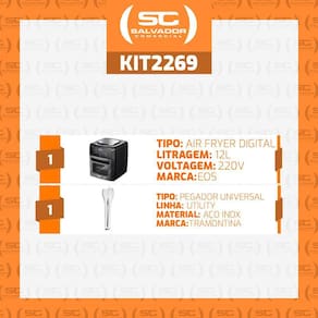 Conjunto Fritadeira Air Fryer Digital Eaf12t 220v EOS e Pegador Universal Utility Tramontina