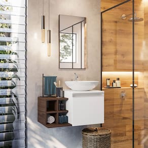 Ter o banheiro dos sonhos fica fácil com a mobília correta. Aliando elegância e praticidade, o Conjunto para Banheiro Roma, composto por um gabinete suspenso e espelheira com espelho, não necessita de muito espaço para ser instalado, é fácil de limpar e dá um super up na decoração de qualquer banheiro. Inspirados nas novas tendências mundiais, agregando também ótima resistência, durabilidade e qualidade com muito requinte e beleza.