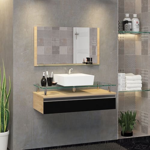 NÃO INCLUI ACESSÓRIOS; COMO SIFÃO, TORNEIRA, VÁLVULA, PARAFUSOS E BUCHAS PARA INSTALAÇÃO E FIXAÇÃO. Acabamento da Cuba: Alto Brilho Acabamento da Porta: Pintura UV Acompanha Cuba: Sim Acompanha Parafusos Para Fixação Na Parede: Não Acompanha Tampo: Sim Ambiente Principal: Banheiro codigo_ean: 7909903708606 Complexidade da Montagem: Baixa: pode ser montado por uma pessoa sozinha Cor: Freijó/Preto Cor da Cuba: Branco Cor do Produto: Freijó/Preto Escala de Brilho: Amadeirado Escala de Brilho da Porta: Semi-Brilho Espessura do Espelho: 3 mm Formato do Espelho: Retangular Furação para Cuba e Torneira: Sim Informações Complementares: NÃO enviamos os parafusos e buchas para instalação.Recomendamos parafusos e buchas número 08.A fixação do produto é muito simples Itens Inclusos: 1 espelho, 1 cuba e 1 gabinete Manual de Montagem e Instalação: https://product-hub-prd.madeiramadeira.com.br/910249/documents/7ffd2d5d-7b8e-4cfc-8f62-f8645eef10071981348Manual20Contarini.pdf Material da Cuba: Mármore Sintético Material da Porta: MDF Material do Puxador da Porta: Alumínio Material do Tampo: Vidro Material Principal: MDF Medida da Cuba (C x L x P): 35X35X11 Medida da Espelheira (A x L x P): 39x55x10 Medida do Gabinete (A x L x P): 24x60x39 Necessita Montagem: Não Origem do Produto: Nacional Peso: 13,5 kg Possui Espelheira: Sim Possui Gabinete: Sim Possui Gavetas: Não Possui iluminação: Não Possui Pés: Não Possui Portas: Sim Possui Rodízio: Não Produto Montado: Não Quantidade de Portas: 01 Recomendações de Uso, Manutenção e Limpeza: A limpeza deve ser feita com pano úmido e liso.Não utilizar materiais ásperos ou jatos de água diretamente sob o produto. Suporte para Toalheiro: Não Tamanho do Espelho (A x L): 39X75 Tipo de Dobradiça/Corrediça da Porta: Alumínio Tipo de Fixação do Espelho: Parafusos Tipo de Madeira Maciça da Porta: Eucalipto Tipo de Porta: Basculante Tipo de Puxador da Porta: Embutido Marca: Contarini