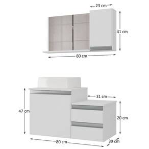 Medidas gabinete: 80cm x 40cm x 47 (comp. / prof. / altura)Medidas da pia sobrepor : 34x34x11Medidas Espelheira : 80cm x 40cm x 14cm (comp. / altura / prof)
