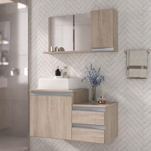 Conjunto Gabinete Banheiro Cross 80 (gabinete+espelheira+cuba) Madeirado Inteiro