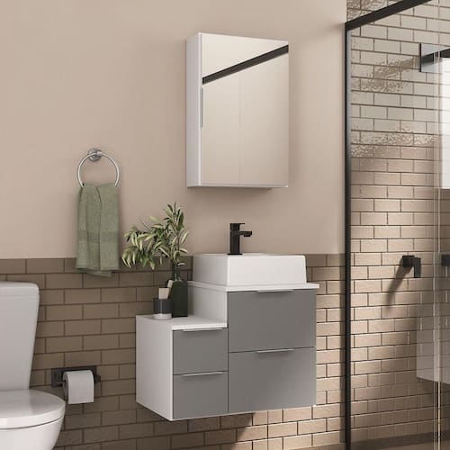 Acompanha : Gabinete + Cuba Elevada + Espelheira com espelhoModelo moderno, com puxador de alumínio de encaixe