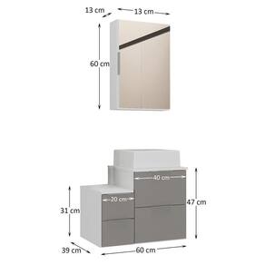 Medidas gabinete: 60cm x 40cm x 47 (comp. / prof. / altura)Medidas da pia sobrepor : 34x34x11Medidas Espelheira : 60cm x 40cm x 14cm (comp. / altura / prof)