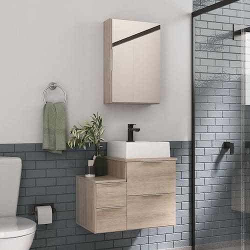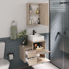 Acompanha : Gabinete + Cuba Elevada + Espelheira com espelhoModelo moderno, com puxador de alumínio de encaixe