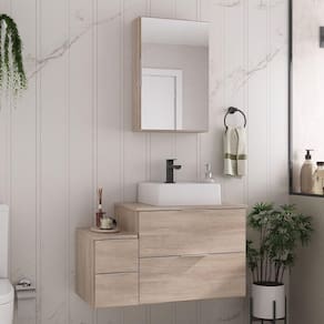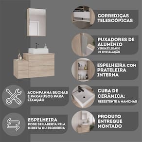 Acompanha : Gabinete + Cuba Elevada + Espelheira com espelhoModelo moderno, com puxador de alumínio de encaixe