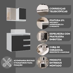 Acompanha : Gabinete + Cuba Elevada + Espelheira com espelho