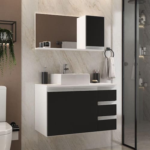 Acompanha : Gabinete + Cuba Elevada + Espelheira com espelho
