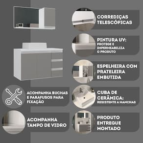Acompanha : Gabinete + Cuba Elevada + Espelheira com espelho + Tampo Vidro Temperado