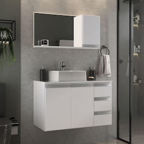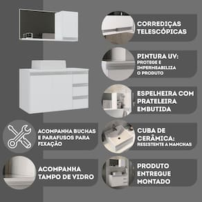 Acompanha : Gabinete + Cuba Elevada + Espelheira com espelho + Tampo Vidro Temperado